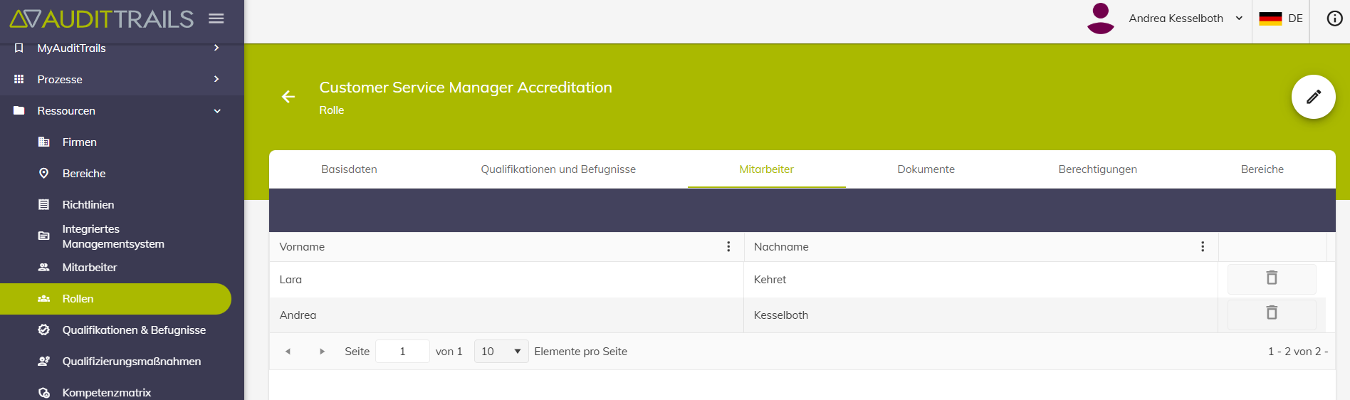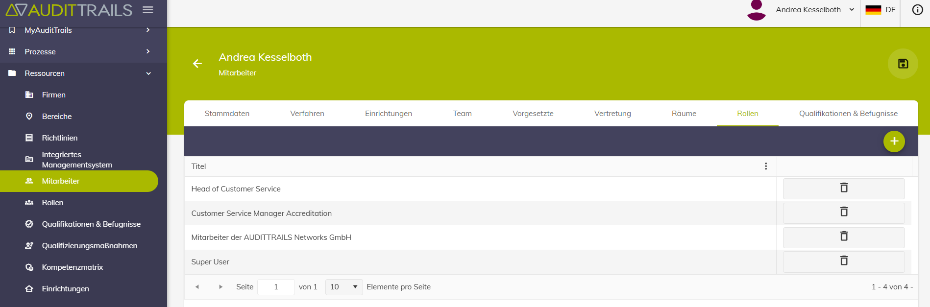 Dazu kann im Modul Mitarbeiter im Reiter Rollen geprüft werden, welche Rollen der verlassende Mitarbeiter inne hatte.