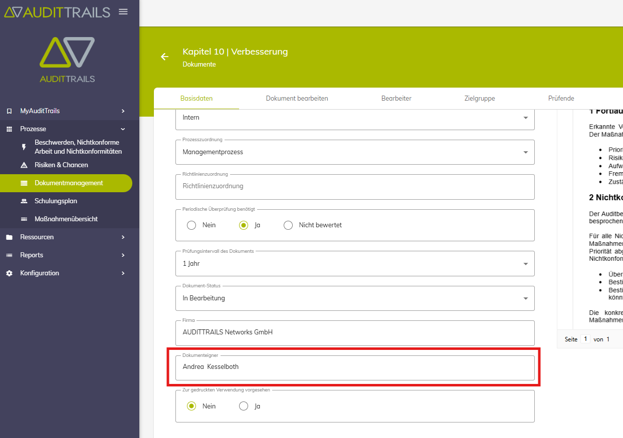 Anschließend in den Basisdaten der Dokumente den Dokumenteigner ändern.