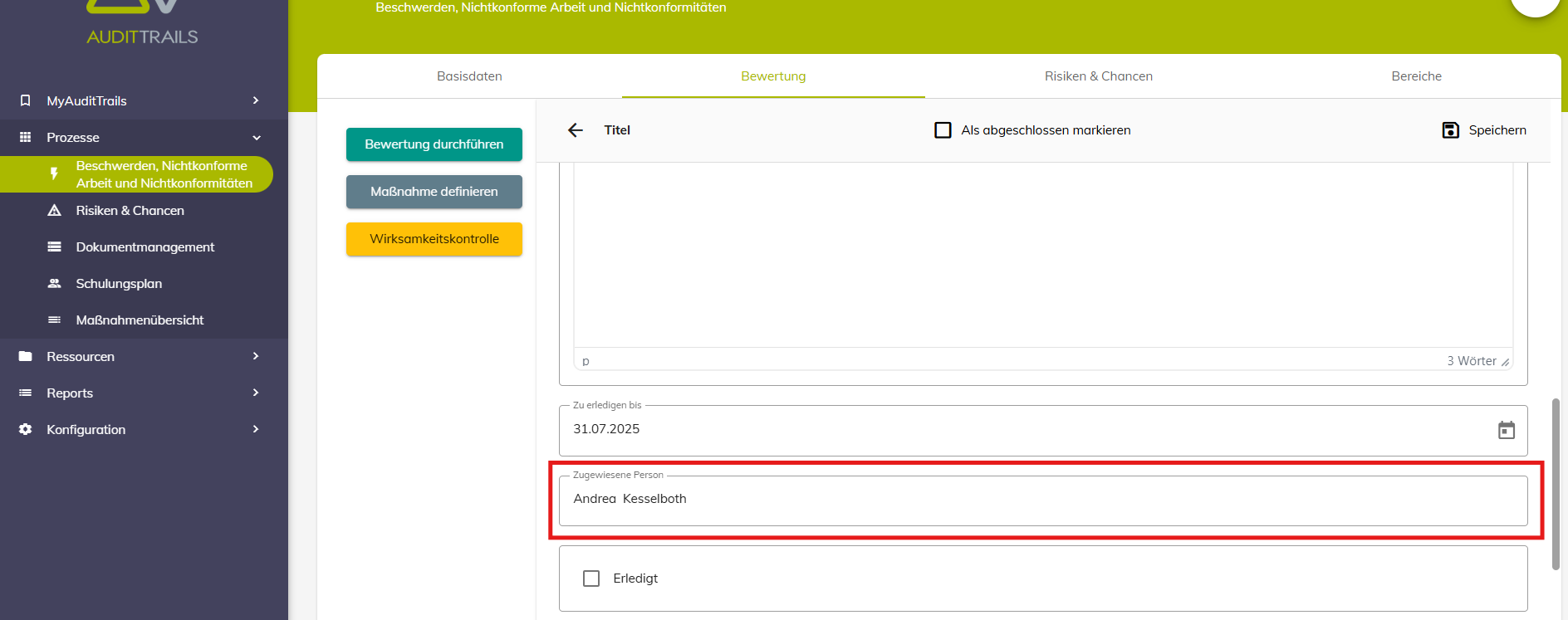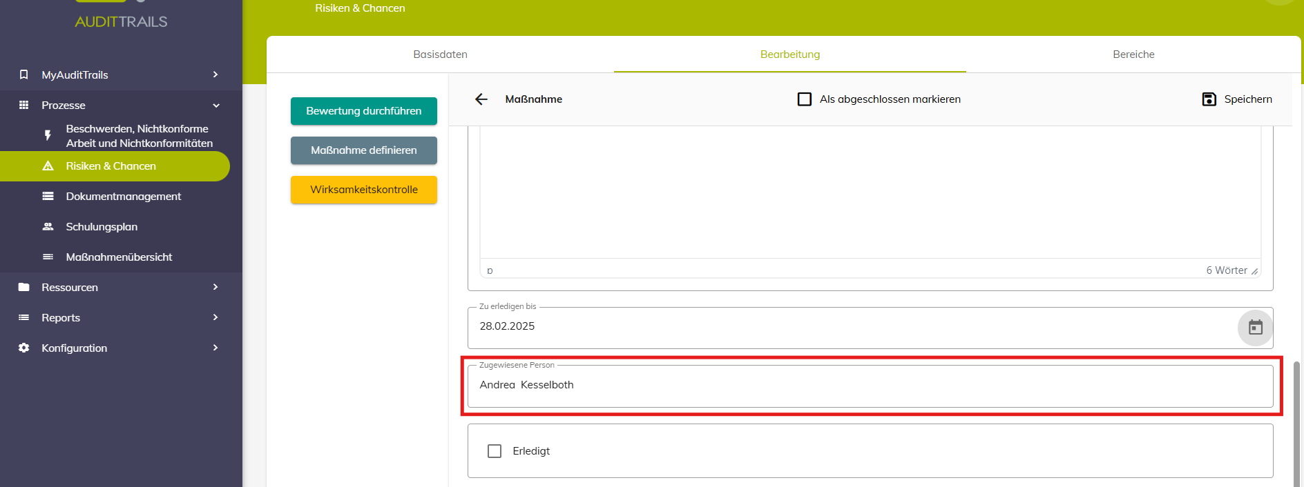 geöffnet und die Maßnahme bei zugewiesene Person auf einen anderen Mitarbeiter übertragen werden.
